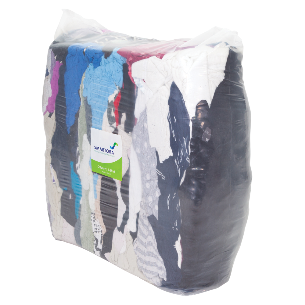 Coloured T Shirt Wipers which have been metal detected - these come in a 10kg Bag with a carry handle for ease of transportation